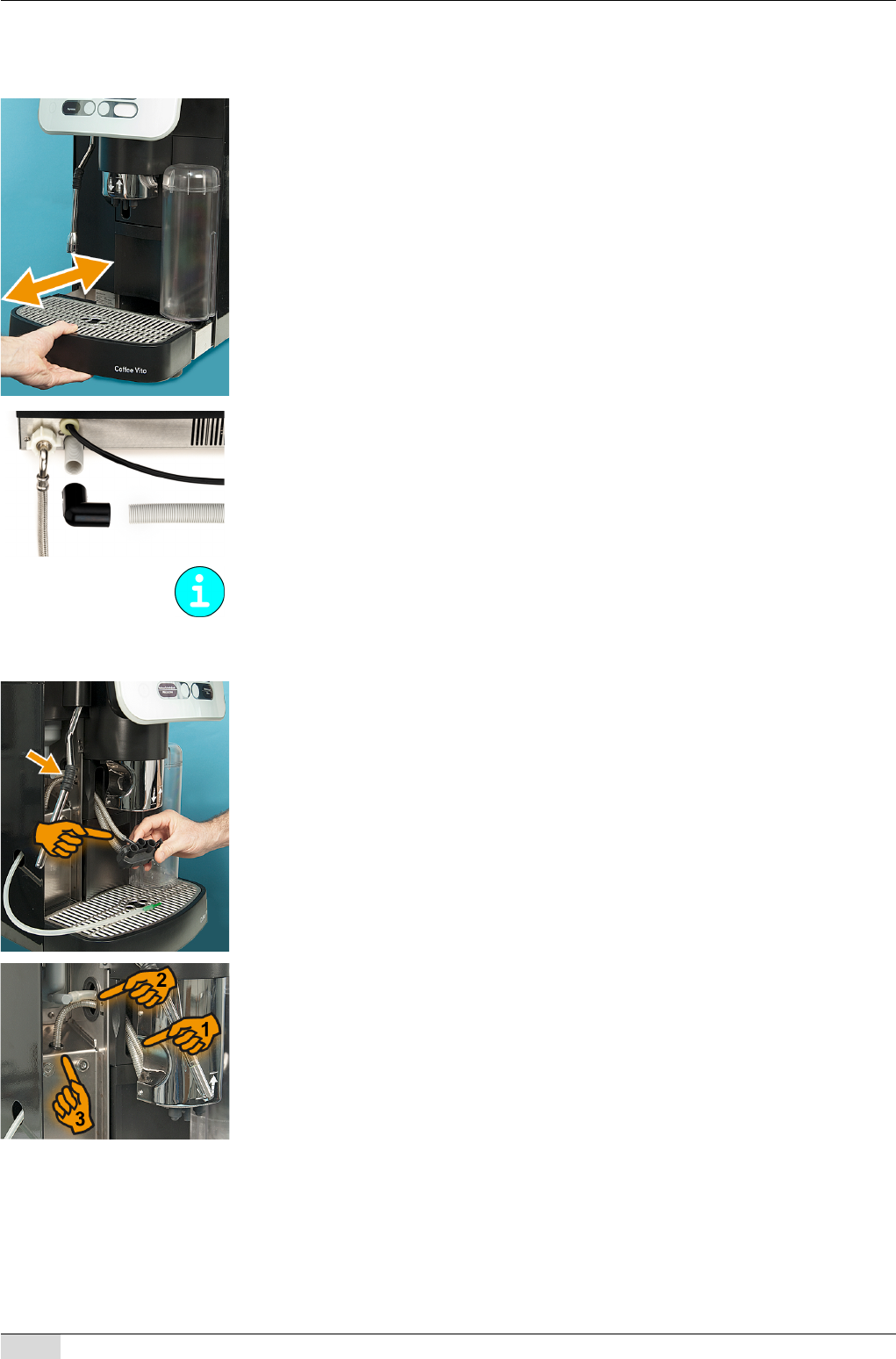 ► Milchschlauch durch die Öffnung (Pfeil) führen und am Schäumerkopf montieren (siehe