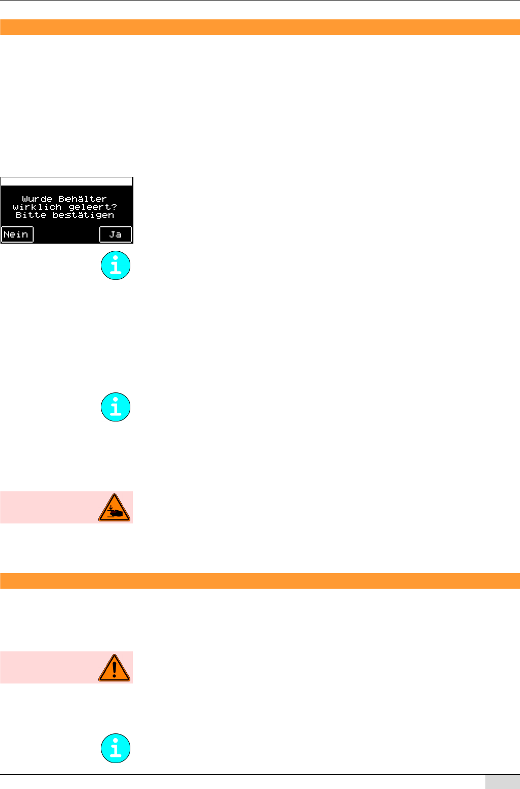 Wird die Abfrage nach dem Leeren des Satzbehälters versehentlich mit „Nein“ quittiert, bleibt