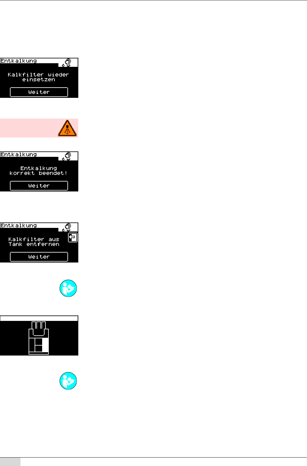 ► Entkalkungsvorgang mit Feld „weiter“ fortsetzen.