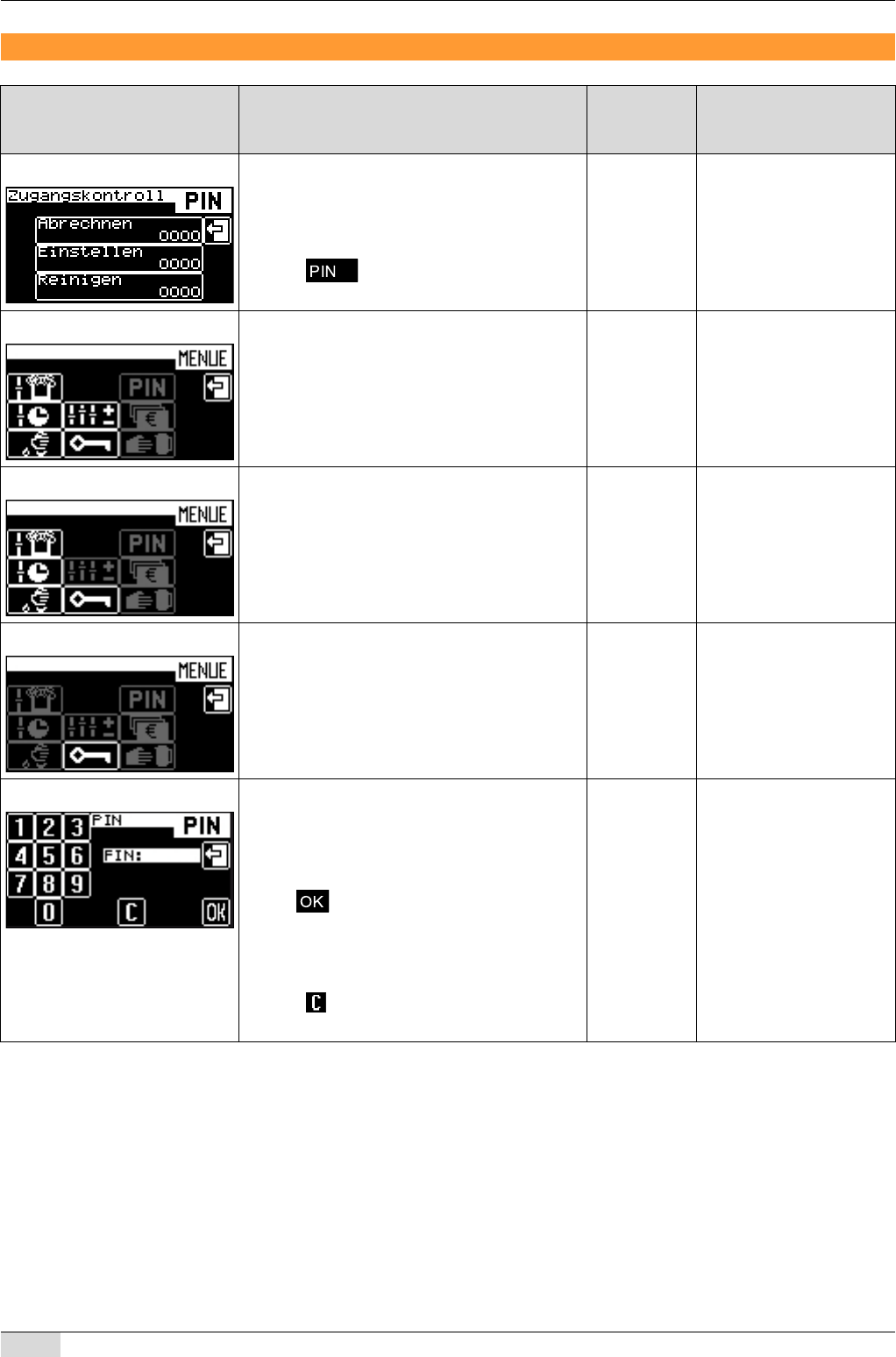 „Reinigen“, die Menüpunkte: Zugangskontrolle