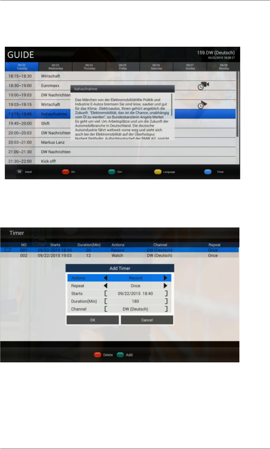 l’enregistrement de l’émission. Appuyez sur la touche OK pour obtenir plus amples