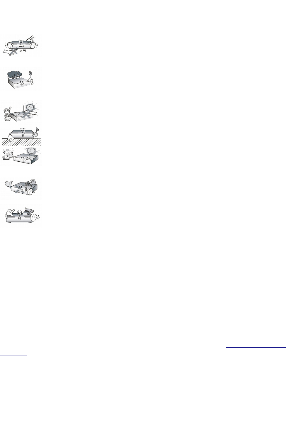 dégâts. Ne touchez pas l’extrémité de la prise de courant avec des mains humides.