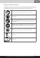 Explanation of the symbols on the equipment The use of symbols in this manual is intended to draw your attention to possible risks. The safety symbols and the explanations that accompany them must be perfectly understood. The warnings in themselves do not remove the risks and cannot replace correct actions for preventing accidents. Read and observe the instructions manual and safety regulations before starting the machine! Wear ear-muffs! Wear a breathing mask.
