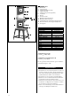 6. under the base plate (E) of the band saw; screw it into place by hand with 4 hex bolts M8x45, 8 washers, 4 circlips and 4 hex nuts. (Fig. 2.1) Set the machine with the base on a level surface and tighten all the screws and nuts firmly. 4. 5. 6. Placez un carton derrière la machine et faites-la baculer vers l‘arrière avec précaution jusqu‘à ce que la machine repose sur le boîtier. Placez le châssis pré-assemblé (Fig.