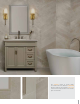 QUADEC square-shaped profiles taper off the tile edges of the vanity and niche while DILEX-BWA eliminates the need for caulking between the vanity and pony wall.