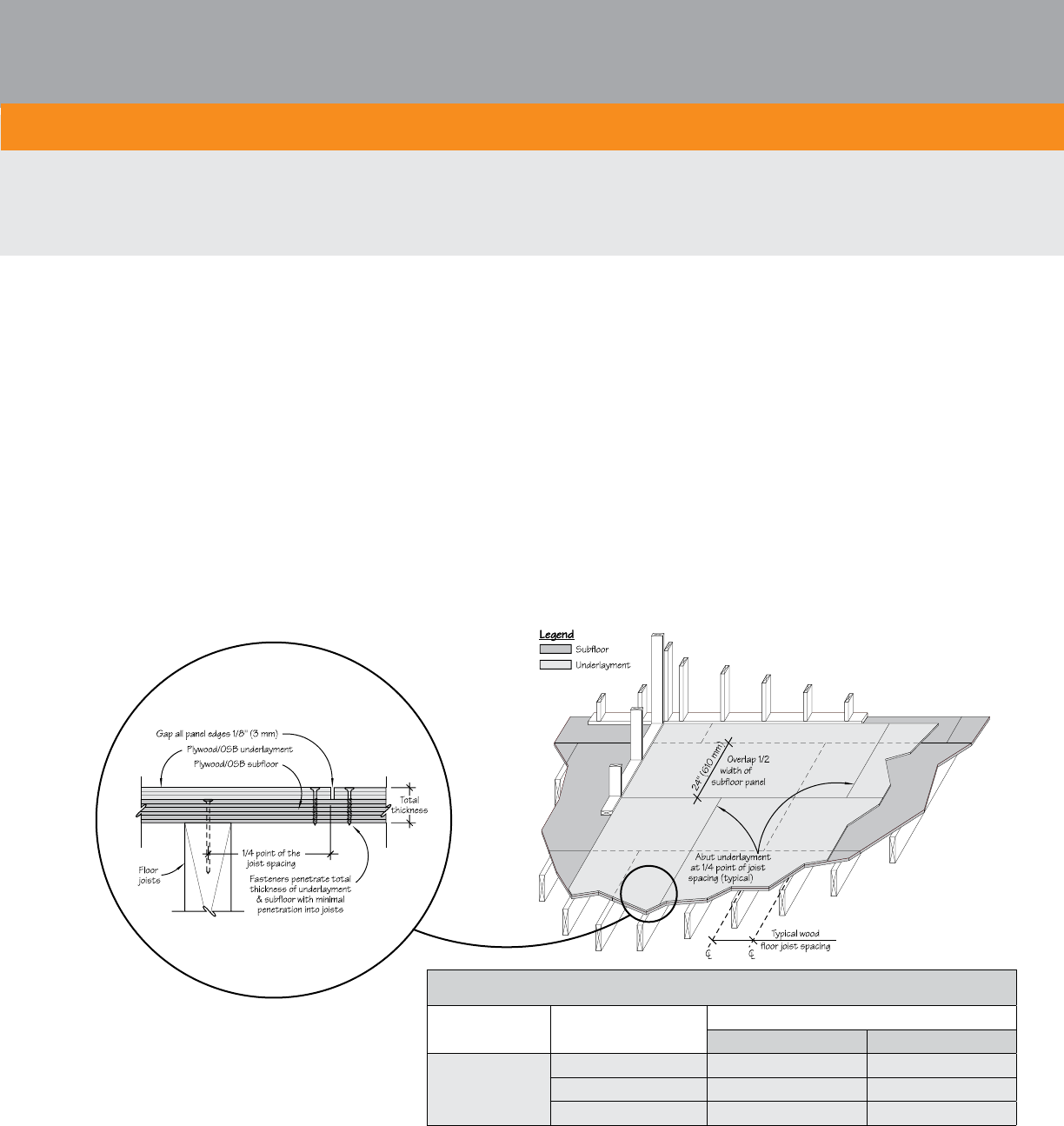 2. Fasteners must pass through entire thickness of underlayment and subfloor panels
