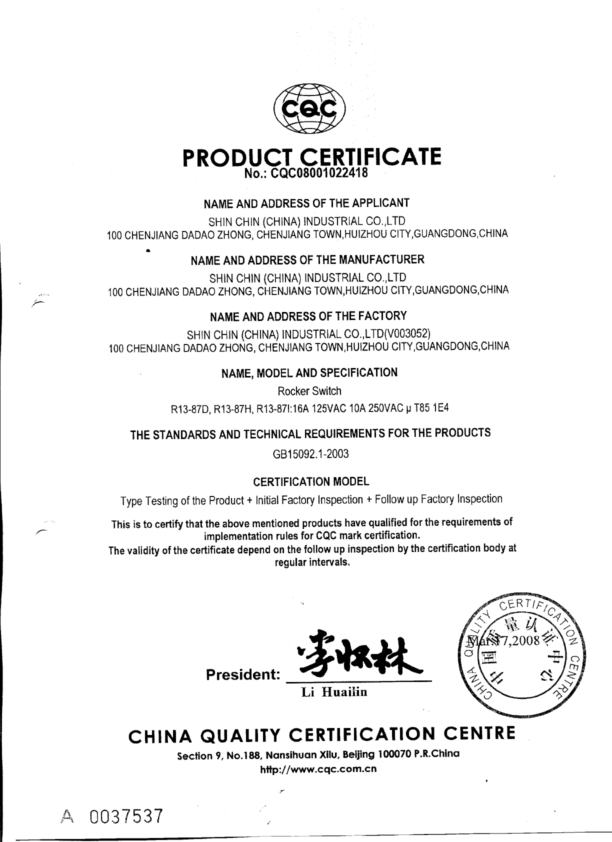 Toggle switch 250 Vac 10 A 1 x Off/On R13-87A-02 latch 1 pc(s)