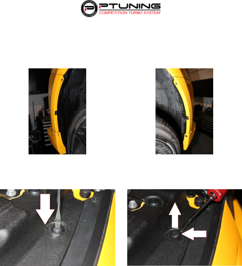 1. Using a 10mm socket and flat head screwdriver, remove the 2 body clips and the 1 bolt that