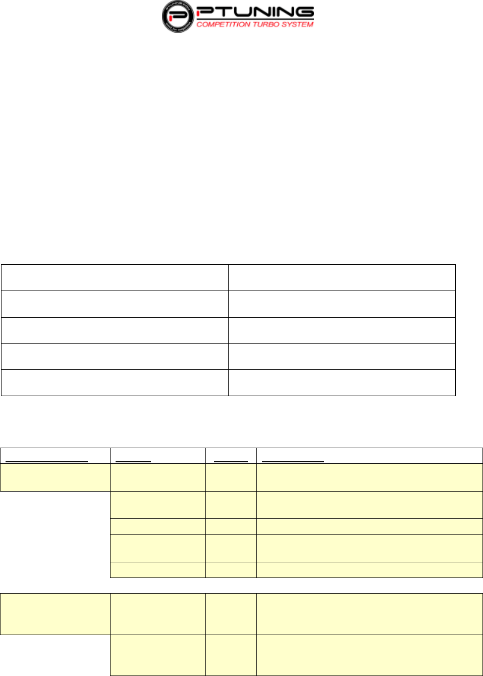 TURBOCHARGER SYSTEM PARTS LIST (Included with Part# PTP-TBK-10004-RED/BLK/POL):