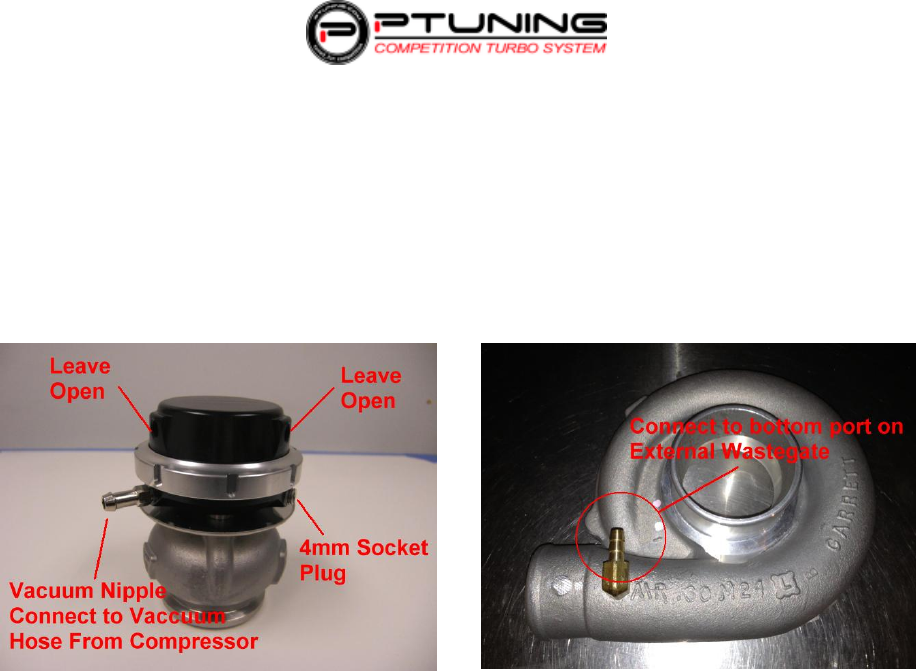 the other end of the hose to the 90* vacuum nipple fitting on the turbocharger’s compressor cover.