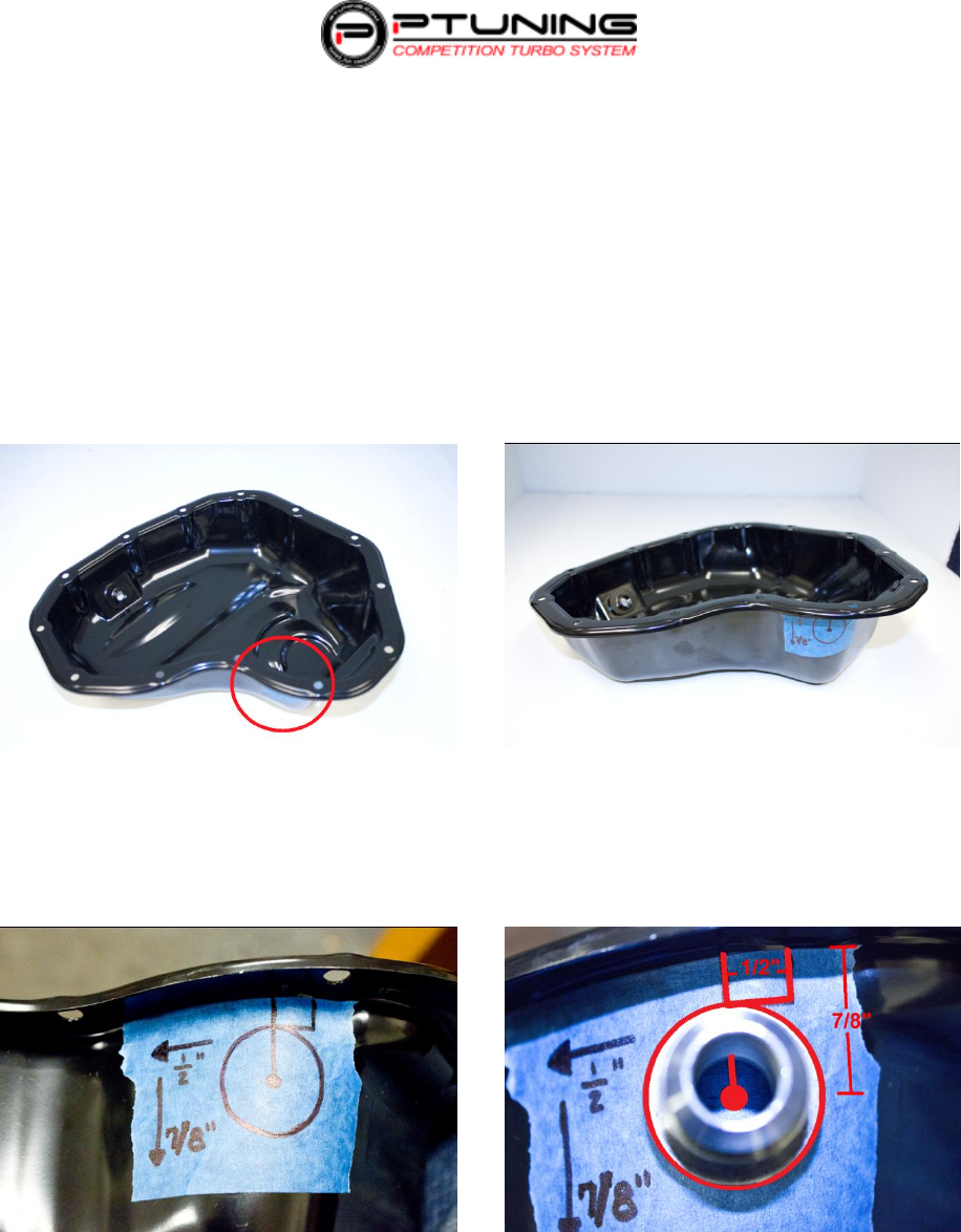 1. If the turbo kit was purchased with the optional PTUNING pre-tapped oil pan then skip to step 9,