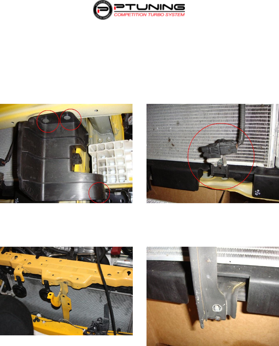 1. Remove the plastic tabs and bolt securing theplastic radiator air diversion panel beneath the driver-