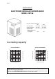 - Page 11 SPECIFICATIONS Dimensions: HEIGHT WIDTH DEPTH WEIGHT 850 mm. 1065 mm. 698 mm. 179 Kg. MFE 61 - MACHINE SPECIFICATIONS Model MFE 61 AS MFE 61 WS Basic electr. 230/50/3 400/50/3 + N Cond. unit Finish Comp. HP Water req. lt/24 HR Air Water S. Steel 2.5 1150* 8000* Amps Start Amps 7,1 3,4 56 28 * A 15°C water temperature Watts Electric power cons. Kwh per 24 HR 3600 80 Nr. of wires 4 x 2.5 mm 2 5 x 2.