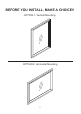 INSTALLATION INSTRUCTIONS 1 1. Measure the distance between the holes in the mounting hangers (B) on the back of the mirror (A). B Note: The distance between the holes in the mounting hangers (B) on the back of the mirror (A) is 20 3/4” (526mm) if installing the mirror vertically. Note: The distance between the holes in the mounting hangers (B) on the back of the mirror (A) is 28 3/5” (728mm) if installing the mirror horizontally. B B A B 2.