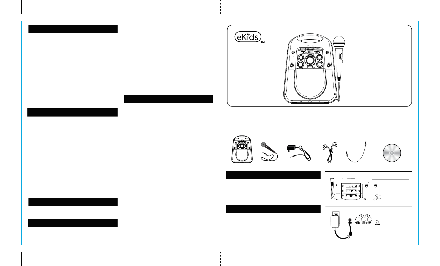 Karaoke Player Microphone AC/DC Adapter RCA Cable Audio Cable Sample CDG Disc