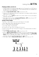 Using the iBT76 Playing Audio via Aux In 1. Connect micro USB charging/audio cable to the Charging/Aux-in USB Port on the side of the unit and connect the 3.5mm audio plug end to the headphone or line-out jack on your audio device. 2. Slide the Power On/Off Switch to ON to turn the unit ON. 3. Power on the audio device and use the controls on the device to play or pause audio and to navigate tracks. 4. Press the – or + Button to adjust the system volume. You can also adjust volume on your device. 5.
