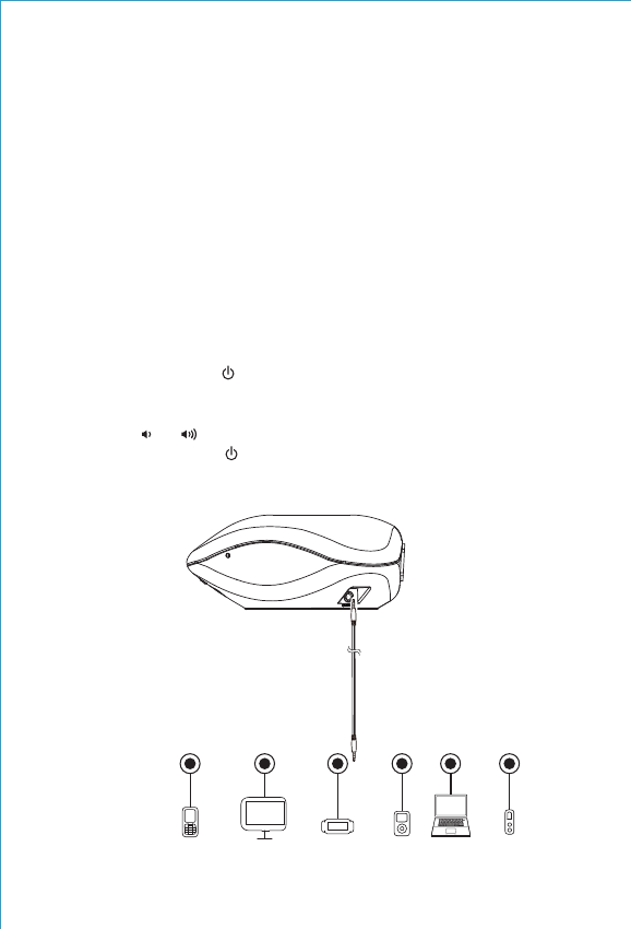 1. Connect a standard audio cable with 3.5mm plug to the headphone or