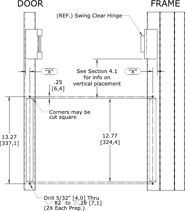 being used. Then drill a 3/4” [19,0mm] diameter hole through the frame at the marked