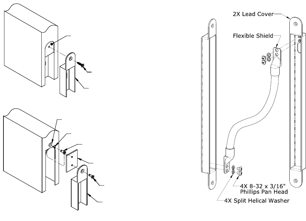 washers (included), assemble the flexible shield to the inside of both of the lead covers as