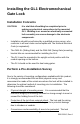 Installing the GL1 Electromechanical Gate Lock Installation Concerns CAUTION: It is vital that all welding be completed prior to making any electrical connections to the mounted GL1. Welding in or around an electrically-connected lock assembly can cause damage to the electronic components. • Installation should be performed by a qualified service person, who conforms to all local codes and complies with The National Electrical Code (or equivalent).