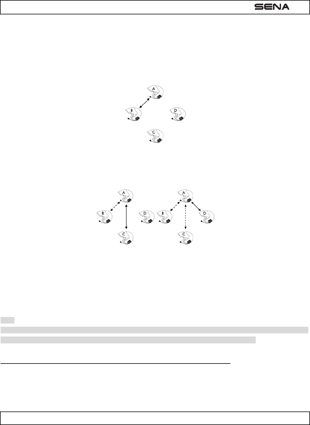 For example, after the pairing procedures listed above, headset D is the first intercom friend of headset A. Headset C is