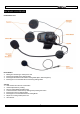 | SMH5-FM(SMH5) PACKAGE CONTENTS Headset Main Unit Phone Button ● Making and Answering a mobile phone call ● Entering into Mobile Phone Pairing Mode ● Entering into Bluetooth Audio Device Pairing Mode (MP3, GPS navigation) ● Entering into Voice Activated Phone Answering Setting Mode Jog Dial ● Start and End an Intercom Conversation ● Volume adjustment by rotating ● Play and Pause Bluetooth MP3 player ● Track-forward and Track-back by rotating while pressing the button ● Entering into Intercom Pairing Mode