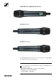 Installing the SKM 100 G4 Replacing the microphone module You can find a list of the recommended microphone modules for the handheld transmitter under “Microphones and cables”. To change the microphone module: ▷ Unscrew the microphone module. ▷ Screw the desired microphone module on. ► Do not touch the wireless microphone contacts or the microphone module contacts. If you touch the contacts, they may become dirty or bent.