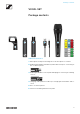 Package contents PORTABLE ENG SET Package contents ► Additional information 1 Belt clip for the transmitter 2 Hot shoe adapter for the receiver 3 XSW Digital TX XLR: transmitter (female XLR socket) for connecting to a microphone ► 4 XSW Digital TX 35: transmitter (3.