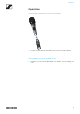 Operation Holding the microphone ► ▷ ▷ ▷ ▷ Grip the microphone only by the handle. Hold the microphone 5 to 10 cm in front of your mouth. Do not grab the transmitter. The range may decrease if the transmitter is covered. Do not touch the microphone basket. The sound may be distorted if the microphone basket is covered. Switching on the transmitter and receiver ► ▷ ▷ Briefly press the button on the transmitter and the button on the receiver. The status LEDs indicate the charge level for four seconds.