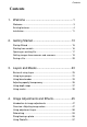 Contents Overview: Applying special effects...........................................66 Using the Filter Gallery.............................................................67 Applying 2D layer effects .........................................................71 Applying 3D layer effects .........................................................73 Warp tool effects ......................................................................77 5. Manipulating Images .......................................