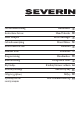 Kundendienstzentralen Service Centres Centrales service-après-vente Oficinas centrales del servicio Centros de serviço Centrale del servizio clienti Service-centrales Centrale serviceafdelinger Centrala kundtjänstplatser Keskushuollot Servisné stredisko Centrala obsługi klientów Szerviz Κεντρικό σέρβις SEVERIN Service Am Brühl 27 59846 Sundern Telefon (02933) 982-460 Telefax (02933) 982-480 service@severin.de Croatia TD Medimurka d.d. Trg.