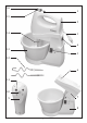 Hand Mixer z Beste klant Voordat het apparaat wordt gebruikt moet de gebruiker eerst de volgende instructies zorgvuldig lezen. Aansluiting Zorg ervoor dat de op het typeplaatje aangegeven spanning overeenkomt met de netspanning. Dit produkt komt overeen met de richtlijnen aangegeven op het CE-label. z Beschrijving 1. Turboknop 2. Huizing 3. Snoer met stekker 4. Handmixersluiting 5. Sluitingsknop voor tiltarm 6. Klip-in haak op tiltarm 7. Tiltarm 8. Basis 9. Typeplaatje 10. Mixerhouderopening 11.