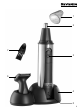 Nettoyage et entretien ∙ Assurez-vous que l’appareil est bien éteint avant de le nettoyer. ∙ Ne pas nettoyer l’appareil avec du liquide. Essuyez les surfaces à l’aide d’un chiffon humide. Tondeuse poils de nez ∙ Nettoyez la tête de tonte après utilisation à l’aide de la brosse de nettoyage fournie. ∙ Pour un nettoyage en profondeur, retirez la tête et rincez-la correctement. Egouttez tout excédent d’eau, laissez sécher et replacez la tête sur l’appareil.