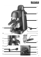 FI Espressokeitin Hyvä Asiakas, Lue seuraavat ohjeet huolellisesti ennen laitteen käyttöä ja säilytä tämä opas tulevaa tarvetta varten. Laitetta saavat käyttää vain henkilöt, jotka ovat tutustuneet näihin ohjeisiin. Verkkoliitäntä Laite tulee liittää määräysten mukaisesti asennettuun, maadoitettuun pistorasiaan. Varmista, että verkkojännite vastaa laitteen arvokilpeen merkittyä jännitettä. Tämä tuote on kaikkien voimassa olevien CE-merkintöjä koskevien direktiivien mukainen. Osat 1.