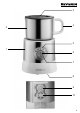 FI Maitovaahdotin Hyvä Asiakas, Lue seuraavat ohjeet huolellisesti ennen laitteen käyttöä ja säilytä tämä opas tulevaa tarvetta varten. Laitetta saavat käyttää vain henkilöt, jotka ovat tutustuneet näihin ohjeisiin. Verkkoliitäntä Laite tulee liittää määräysten mukaisesti asennettuun, maadoitettuun pistorasiaan. Varmista, että verkkojännite vastaa laitteen arvokilpeen merkittyä jännitettä. Tämä tuote on kaikkien voimassa olevien CE-merkintöjä koskevien direktiivien mukainen. Osat 1. Alusta 2. Maitosäiliö 3.