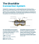 Disconnecting a SharkBite Joint Disconnection of the joint can only occur by using either the SharkBite disconnect clip or the SharkBite disconnect tongs. By applying pressure to the release collar with the clip or the disconnect tongs, the grab ring teeth are splayed. This action releases the pipe, allowing it to be removed from the fitting. 1. Place the SharkBite disconnect clip around the pipe with the non-branded face against the release collar.