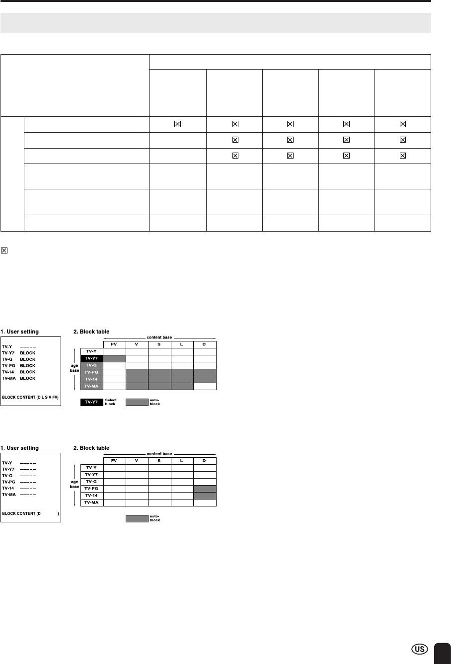 • Age-based ratings can be modified by the content-based ratings, but only in the combinations indicated by an X in