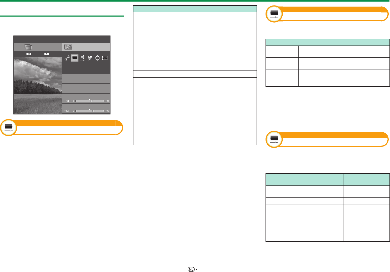 Gebruik de volgende instelfuncties om het beeld