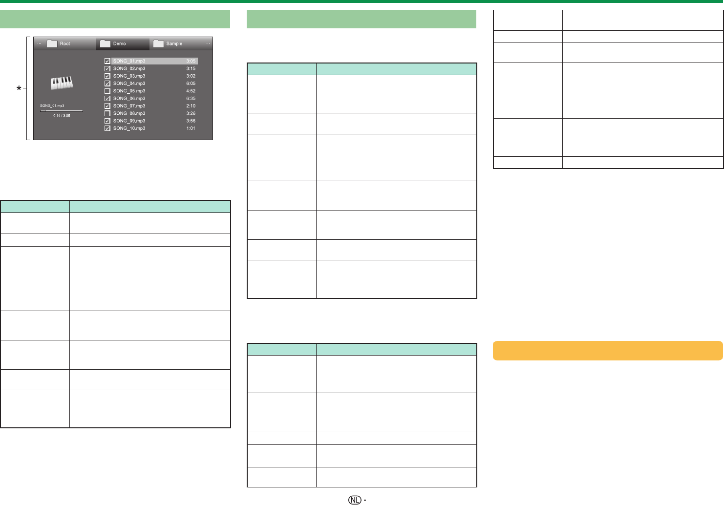 • Hiermee geeft u het “USB-mediamenu” weer.