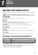 CONTENTS INTRODUCTION ................................................ 4 USING THE MANUAL ....................................... 4 DIFFERENCES BETWEEN MODELS............... 5 1 SETUP BEFORE SOFTWARE SETUP .......................... 6 ● SOFTWARE......................................................6 ● HARDWARE AND SOFTWARE REQUIREMENTS .............................................6 ● POWER ON THE MACHINE ............................7 INSTALLING THE SOFTWARE ........................