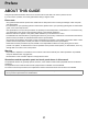 Preface ABOUT THIS GUIDE This guide provides information about how to use the machine and what to do when a problem occurs. If you encounter a problem, check this guide before calling a support center. Please note • This guide assumes that the persons who install and use this product have a working knowledge of their computer and web browser. • For information on your operating system or web browser, please refer to your operating system guide or web browser guide, or the online Help function.