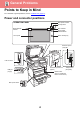 General Problems Maintenance How to clean the automatic document feeder and document glass Paper feed roller In a duplex single pass feeder (DSPF) In a reversing single pass feeder (RSPF) How to clean the bypass feed roller Removing a toner cartridge Bypass feed roller Position of staple replacement and staple jam explanation label ●Inner finisher Toner cartridge Waste toner box MX-3050N/3060N/3070N/3550N/ 3560N/3570N/4050N/4060N/4070N Discarding punch waste ●Finisher ●Saddle stitch finisher/Saddle
