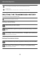 In the transmission log screen, tap [Delete the Selected History] on the action