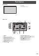 Part Names nFront view 1. LCD panel 2. Power LED (See page 15.) 1 2 nRear view 1 2 4 11 12 13 14 15 16 17 5 6 7 8 1. 2. 3. 4. 5. 6. 7. 8. 9. 10. 9 Speakers Vents Attachment plate (for stand) RS-232C input terminal (See page 12.) DisplayPort input terminal (See page 12.) Audio input terminal (See page 12.) Headphone terminal (See page 12.) AC input terminal (See page 13.) Main power switch (See page 15.) Antitheft hole ( ) 10 3 2 11. 12. 13. 14. 15. 16. 17. Power button ( ) (See page 16.