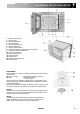DANE TECHNICZNE Napięcie zasilaj ce : 230 V / 50 Hz, pr d zmienny jednofazowy Bezpiecznik : minimum 16 A Pobór mocy Mikrofale Moc wyj ciowa : 1,25 kW Grill : 1,05 kW Tryb kombinowany : 2,2 kW Mikrofale : 800 W (IEC 60705) Grill 1000 W (500 W x 2) Częstotliwo ć mikrofal : 2450 MHz Wymiary zewnętrzne : 596 mm (szer.) x 378 mm (wys.) x 316 mm (gł.) Wymiary komory operacyjnej : 285 mm (szer.) x 202 mm (wys.) x 298 mm (gł.