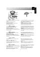 ZUBEHÖR/ACCESSOIRES/ACCESSORI/ACCESORIOS 17 20 18 19 D ZUBEHÖR: Überprüfen Sie, daß folgende Zubehörteile mitgeliefert wurden: (17) Drehteller (18) Drehteller-Träger (19) Antriebswelle (20) Rost Den Drehteller-Träger in die Antriebswelle am Garraumboden einsetzen. Dann den Drehteller darauf legen. Um Schäden am Drehteller zu vermeiden, ist darauf zu achten, daß Geschirr und Behälter bei der Entnahme nicht den Rand des Drehtellers berühren.
