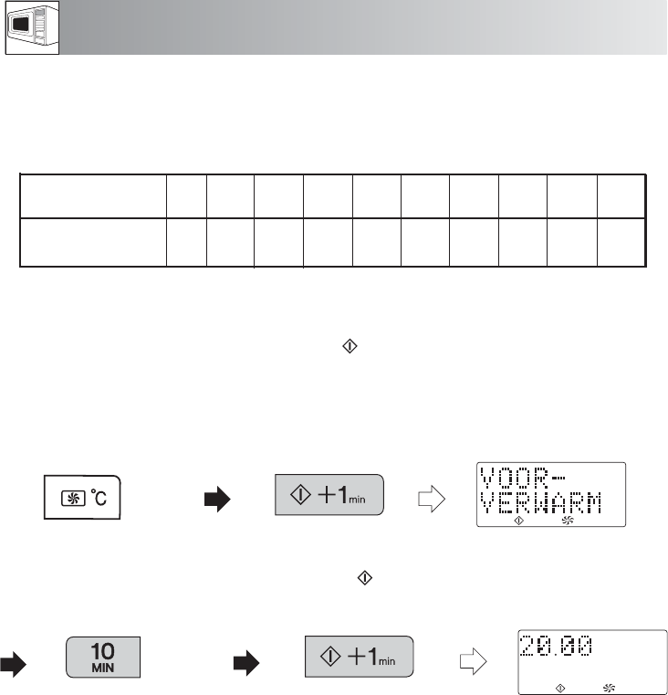 temperatuur in het bovenstaande voorbeeld te veranderen, drukt u op de CONVECTIEWARMTE-toets