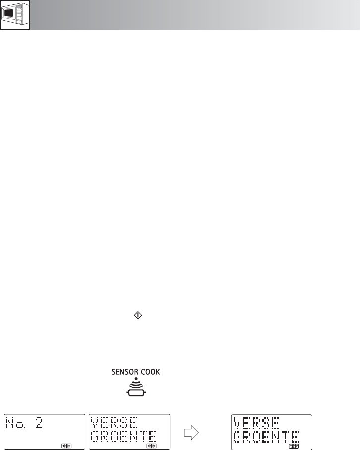 Druk op de SENSOR-toets om een van de gerechten voor het koken met de sensor-funktie te kiezen. Het