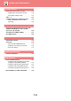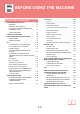 BEFORE USING THE MACHINE BEFORE USING THE MACHINE User Control . . . . . . . . . . . . . . . . . . . . . . . . . . . . . . 1-38 • User List . . . . . . . . . . . . . . . . . . . . . . . . . . . . . . 1-38 • Default Settings . . . . . . . . . . . . . . . . . . . . . . . . 1-42 • Administration Settings. . . . . . . . . . . . . . . . . . . 1-46 • Actions when the user is authenticated . . . . . . 1-47 PART NAMES AND FUNCTION . . . . . . . . . . . . . . . 1-3 • EXTERIOR . . . . . . . . . . . . . .