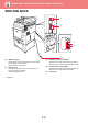 BEFORE USING THE MACHINE►BEFORE USING THE MACHINE AUTOMATIC DOCUMENT FEEDER AND DOCUMENT GLASS MX-M2651/MX-M3051/MX-M3551/MX-M4051/MX-M5051/MX-M6051 (1) (3) (2) (4) (5) (6) (7) (8) MX-M3071/MX-M3571/MX-M4071/MX-M5071/MX-M6071 (2) (3) (4) (5) (6) (7) (8) (1) Paper feed roller This roller rotates to automatically feed the original. (5) Original exit tray The original is discharged to this tray after scanning. (2) Document feeding cover Open this cover to remove an original misfeed.